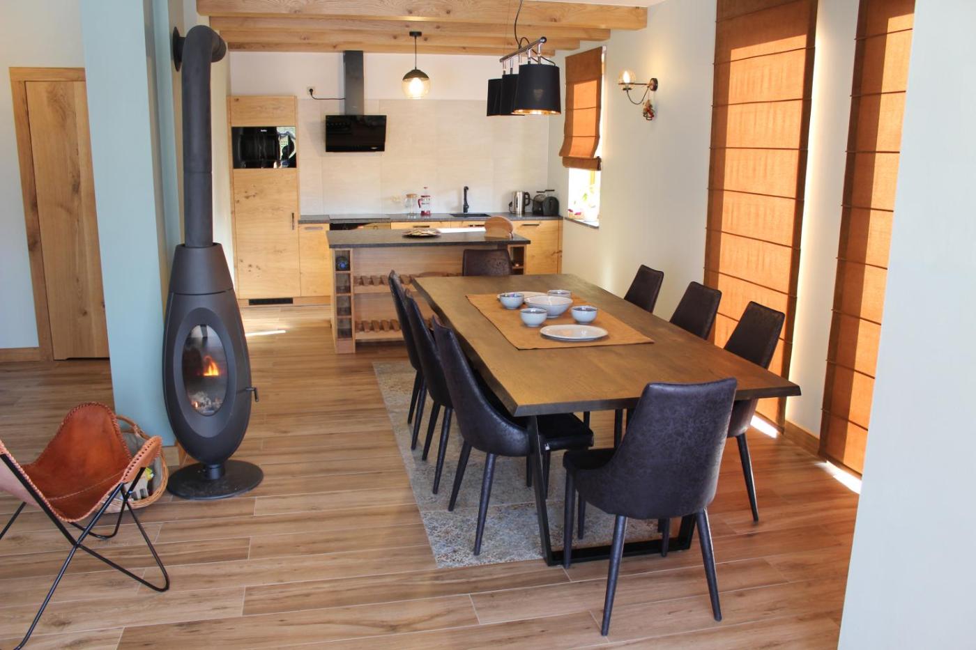 Dom z 4 sypialniami. Guests will have a special experience as the holiday home features a fireplace. Featuring a private entrance, this holiday home consists of 1 living room, 4 separate bedrooms and 3 bathrooms with a shower and a hairdryer. Guests will find a stovetop, a refrigerator, a dishwasher and kitchenware in the well-equipped kitchen. The holiday home also offers a barbecue. Boasting a terrace with garden views, this holiday home also provides a washing machine and a flat-screen TV. The unit offers 5 beds. Dom wakacyjny - 8 osobowy. Powierzchnia pokoju ok.: 98 mkw.