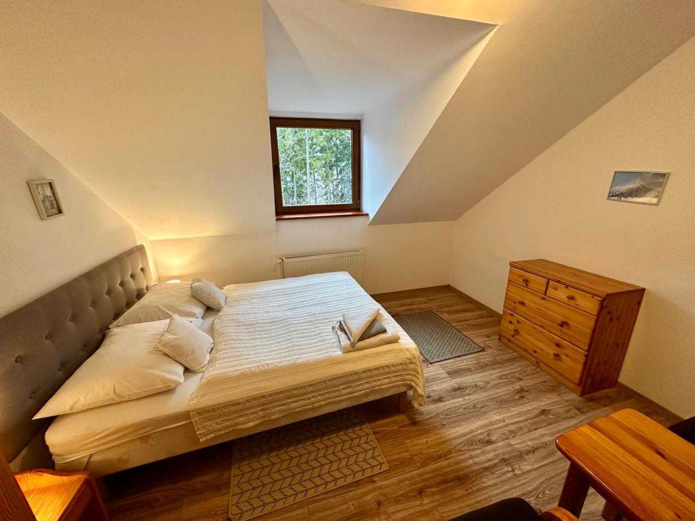 Udogodnienia obejmują również przechowalnię sprzętu narciarskiego oraz duży ogród z wyznaczonym miejscem do grillowania i placem zabaw dla dzieci.