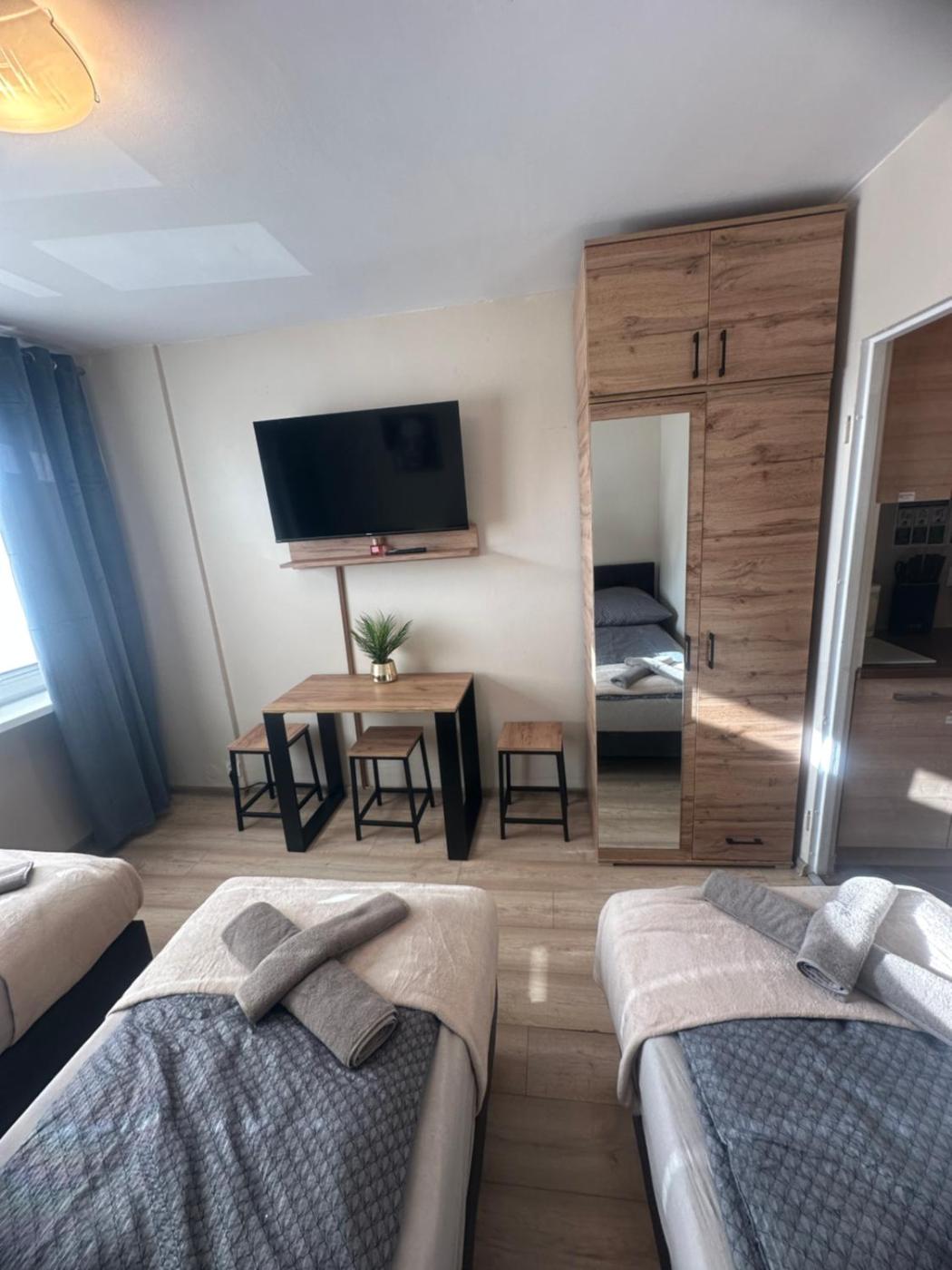Apartament z 1 sypialnią. This apartment features 1 bedroom, a kitchenette and 1 bathroom with a shower and a hairdryer. The apartments kitchenette, which has a refrigerator and kitchenware, is available for cooking and storing food. The apartment features a washing machine, a wardrobe, a safe deposit box, an electric kettle and a flat-screen TV. The unit has 3 beds. Apartament - 3 osobowy. Powierzchnia pokoju ok.: 19 mkw.