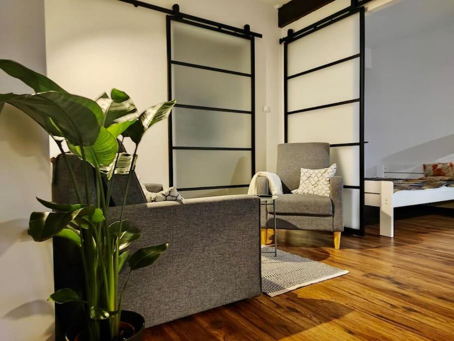 Apartament z 1 sypialnią. Boasting a private entrance, this apartment features 1 living room, 1 separate bedroom and 1 bathroom with a shower and a hairdryer. In the well-fitted kitchen, guests will find a stovetop, a refrigerator, kitchenware and a microwave. The apartment features a flat-screen TV, a tea and coffee maker, a seating area, a dining area as well as garden views. The unit has 3 beds. Apartament - 4 osobowy. Powierzchnia pokoju ok.: 45 mkw.