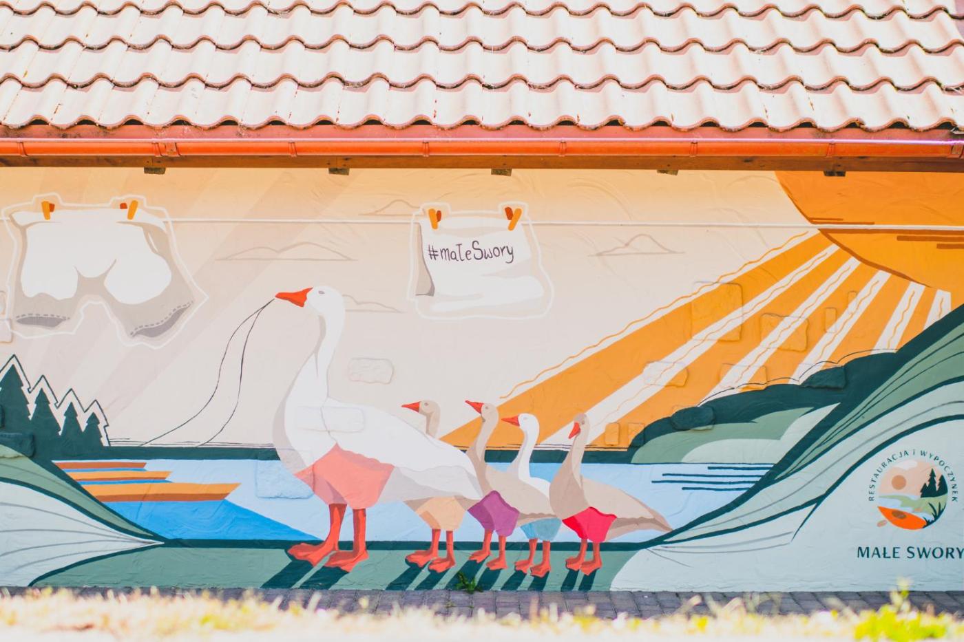 Obiekt RiW Małe Swory - Domek pływający Houseboat i domki drewniane, usytuowany w miejscowości Małe Swornegacie, oferuje ogród, bezpłatny prywatny parking, prywatną plażę oraz taras. Odległość ważnych miejsc od obiektu: Park Narodowy Bory Tucholskie – 13 km. We wszystkich pokojach znajduje się kuchnia i prywatna łazienka. Na terenie ośrodka wypoczynkowego dostępny jest sprzęt do grillowania, a z okien roztacza się widok na jezioro. Goście mogą zjeść posiłek w restauracji lub wypić drinka w barze.