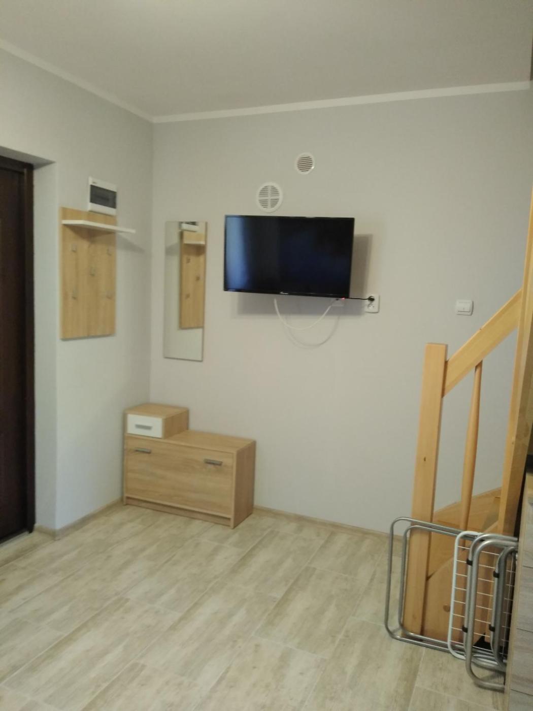Dom z 2 sypialniami. Meals can be prepared in the well-fitted kitchenette, which comes with a stovetop, a refrigerator, kitchenware and a microwave. The holiday home provides a private entrance, soundproof walls, a terrace with ancourtyard view as well as a shared bathroom featuring a walk-in shower. The unit offers 5 beds. Dom wakacyjny - 7 osobowy. Powierzchnia pokoju ok.: 44 mkw.