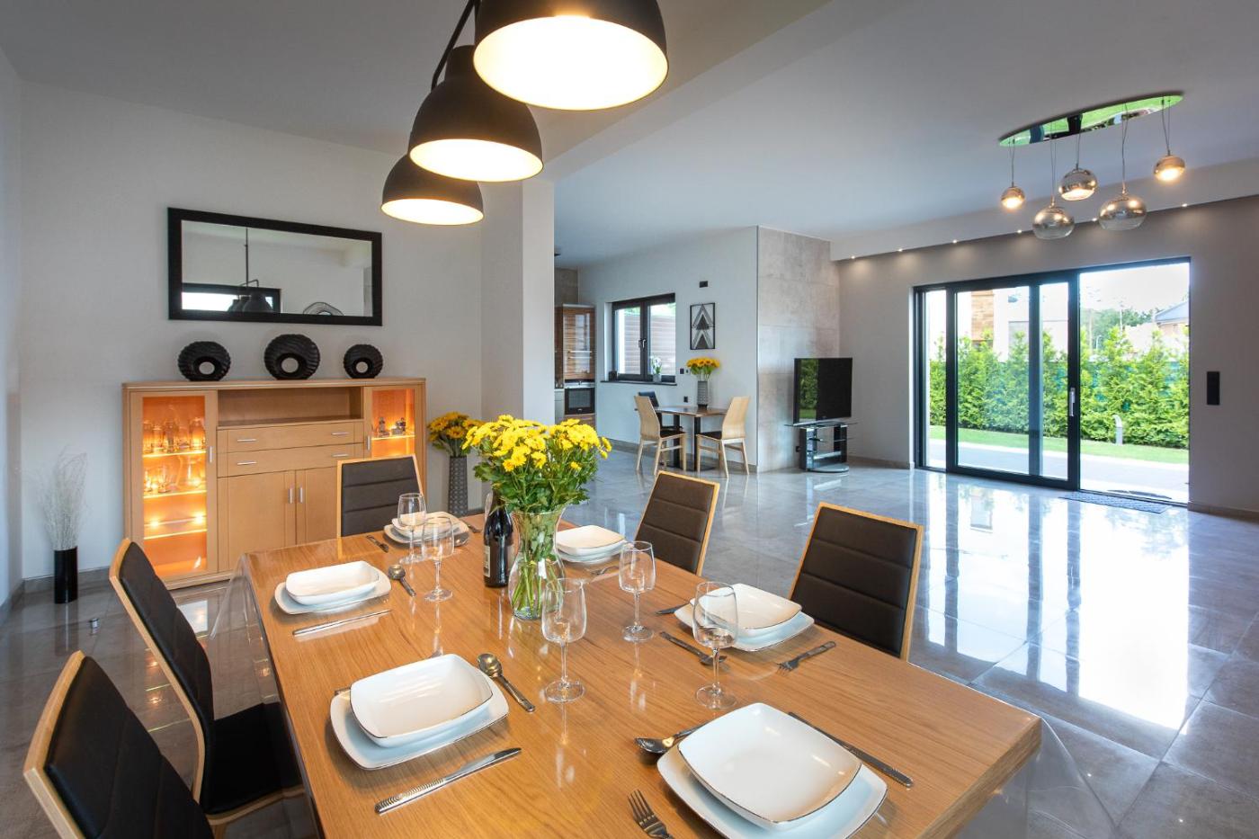 Willa. This villas standout feature is the fireplace. Boasting a private entrance, this spacious villa also includes 4 bedrooms, a seating area and 3 bathrooms with a bath and a shower. Guests will find a stovetop, a refrigerator, a dishwasher and kitchenware in the well-equipped kitchen. The villa also features a barbecue. Featuring a terrace with garden views, this villa also offers a washing machine and a flat-screen TV with satellite channels. The unit has 6 beds. Willa - 8 osobowy. Powierzchnia pokoju ok.: 255 mkw.