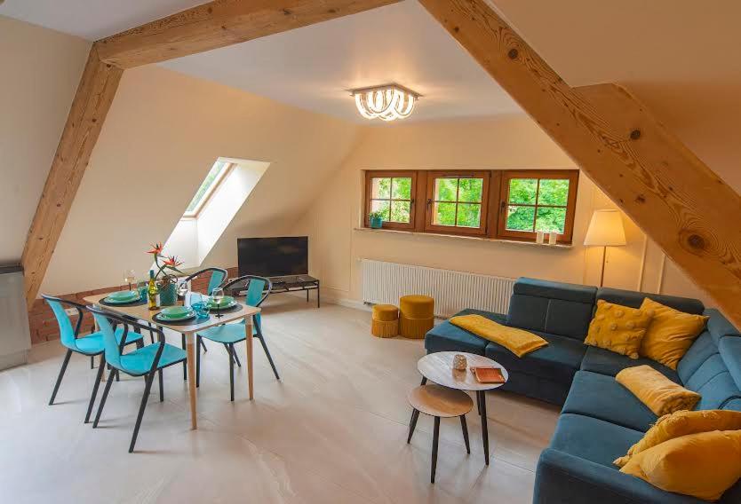 Apartament dwupoziomowy. Boasting a private entrance, this apartment comes with 2 living rooms, 1 separate bedroom and 2 bathrooms with a bath and a shower. Guests can make meals in the kitchenette that features a stovetop, a refrigerator, a dishwasher and kitchenware. The apartment features a flat-screen TV, a washing machine, a tea and coffee maker, a seating area as well as garden views. The unit has 3 beds. Apartament - 7 osobowy. Powierzchnia pokoju ok.: 58 mkw.